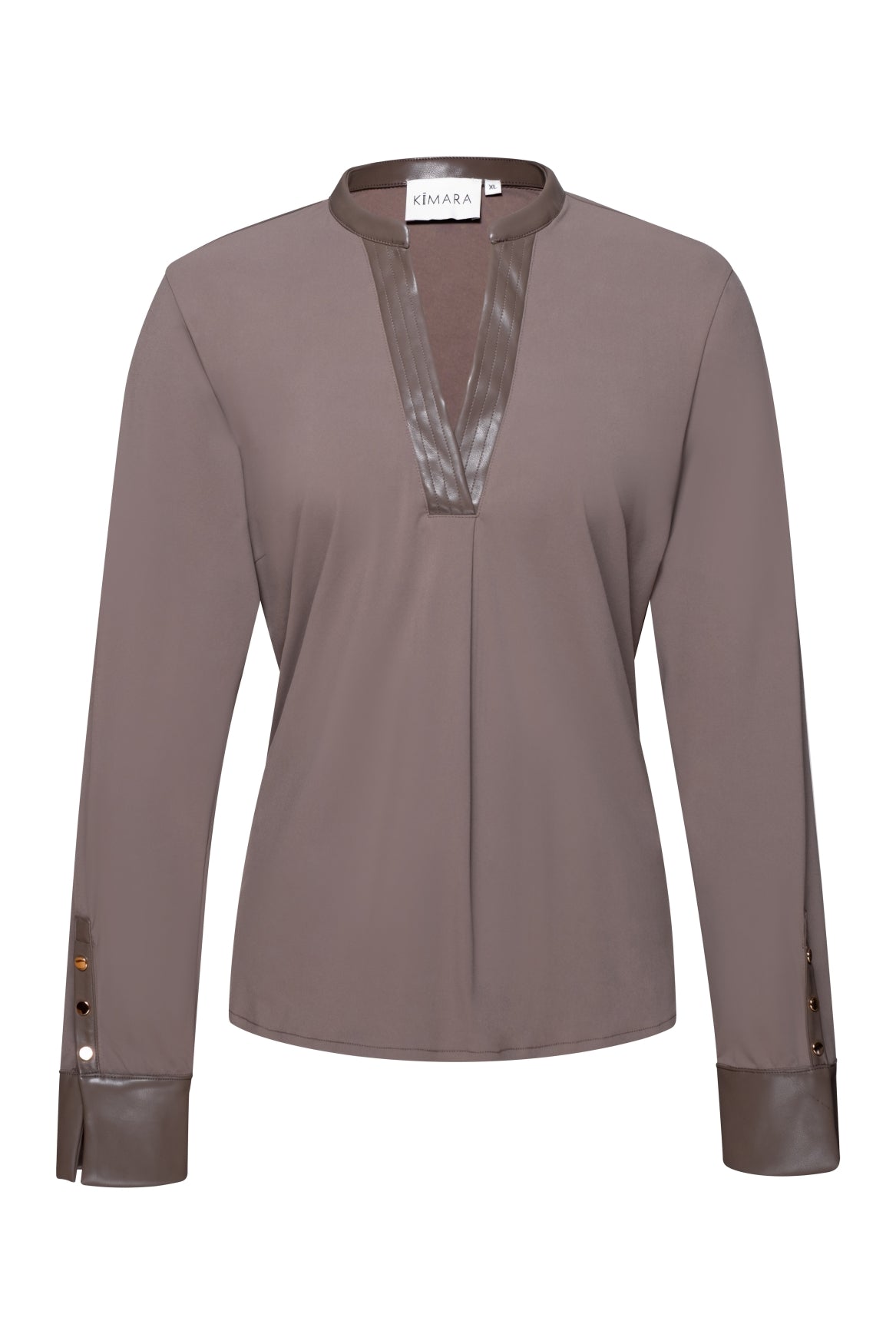 - V-hals met leatherlook bies voor een moderne uitstraling