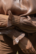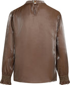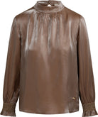De Fea Blouse is een echte blikvanger met een luxe uitstraling. Gemaakt van glanzend metallic materiaal met een satijnachtige finish, straalt deze blouse elegantie uit. De hoge halslijn met geplooide details en de licht gepofte mouwen met gesmokte manchetten zorgen voor een vrouwelijke en verfijnde look.