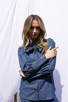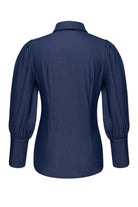 De Felice Blouse is een stijlvolle blouse met een subtiele glamour-touch. Gemaakt van soft denim met een lichte glitter, combineert deze blouse comfort met een elegante uitstraling. De lange mouwen zijn afgewerkt met knoopdetails op de manchetten, en de blouse wordt geleverd met een verwijderbare strap – draag haar met of zonder, afhankelijk van je look.