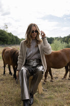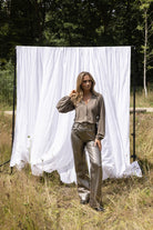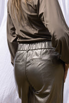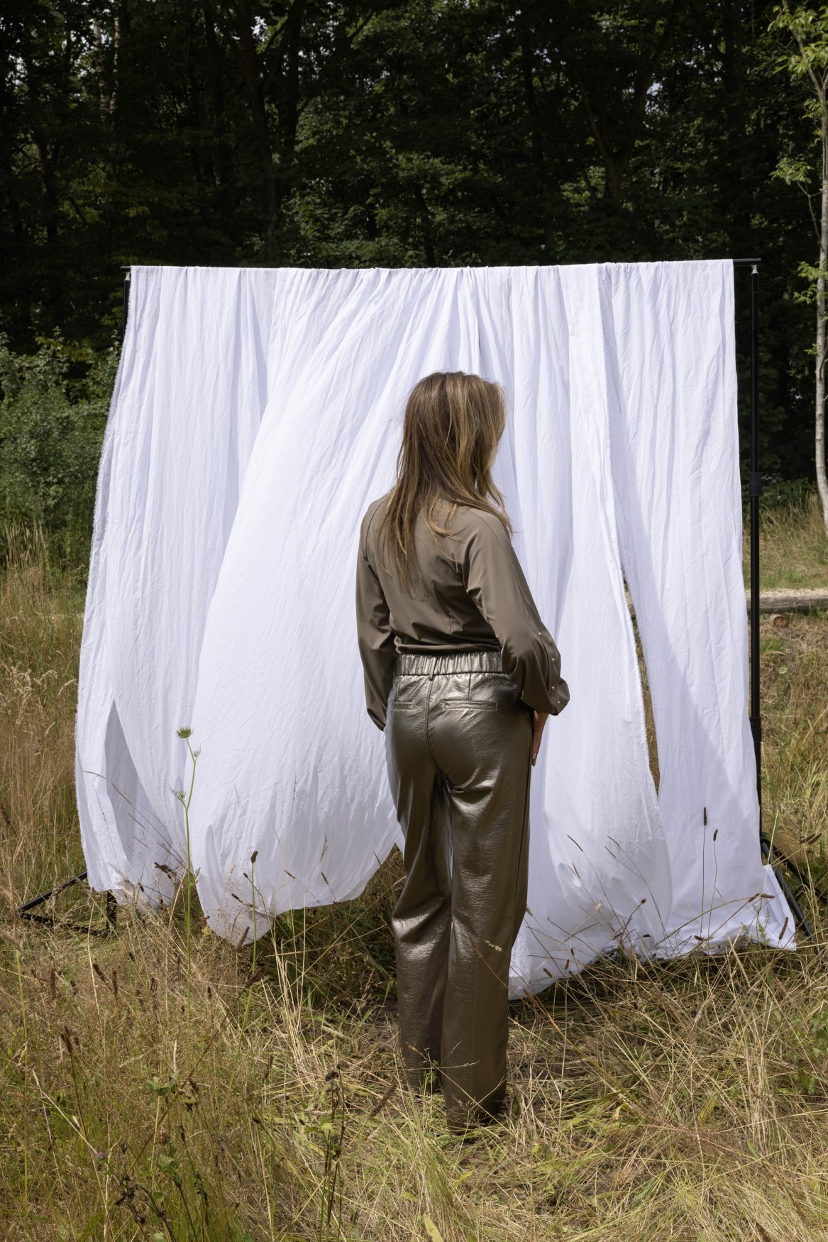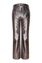De Isabeau Pants zijn dé eyecatcher van het seizoen. Gemaakt van metallic PU-materiaal, hebben deze broeken een opvallende glans en een krachtige uitstraling. De elastische tailleband met riemlussenvoorzakken en knoopsluiting zorgen voor een comfortabele en praktische pasvorm, terwijl het metallic effect direct een statement maakt.