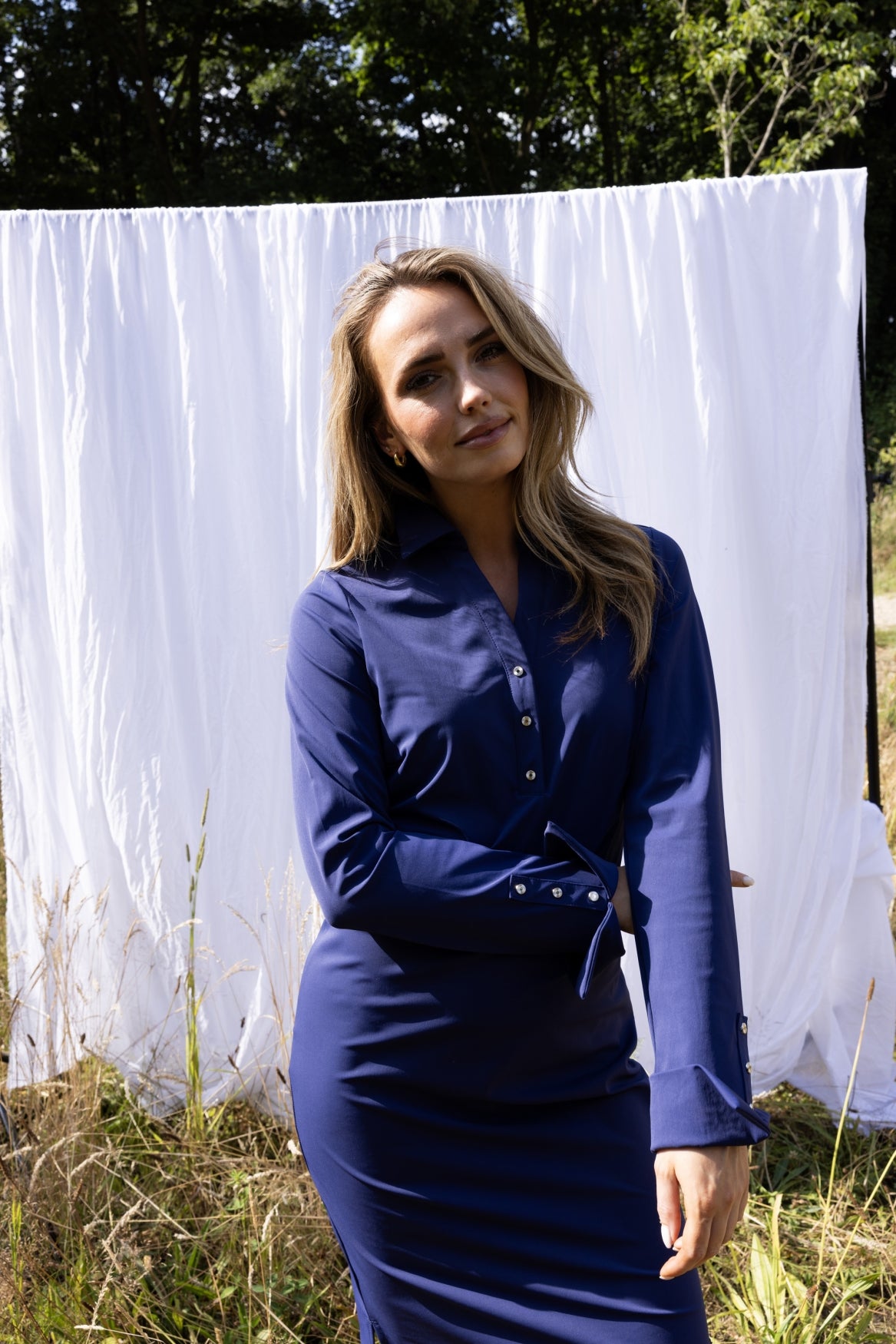 De Anna Dress is een elegante en veelzijdige jurk die moeiteloos stijl en comfort combineert. Met haar klassieke kraag, V-hals en knoopsluiting aan de voorkant straalt deze jurk tijdloze klasse uit. De lange mouwen met knoopmanchetten geven een verfijnde finishing touch, terwijl de rechte pasvorm zorgt voor een flatterend silhouet.