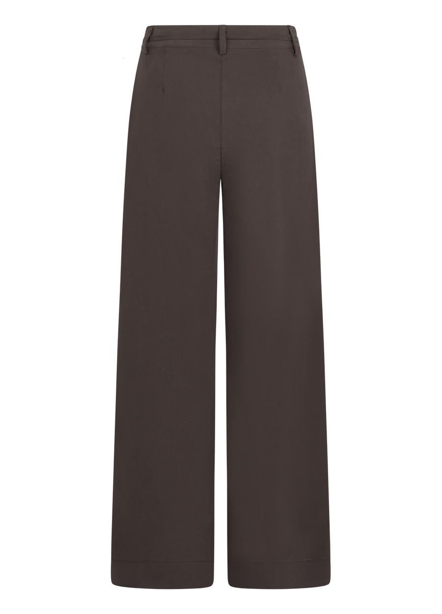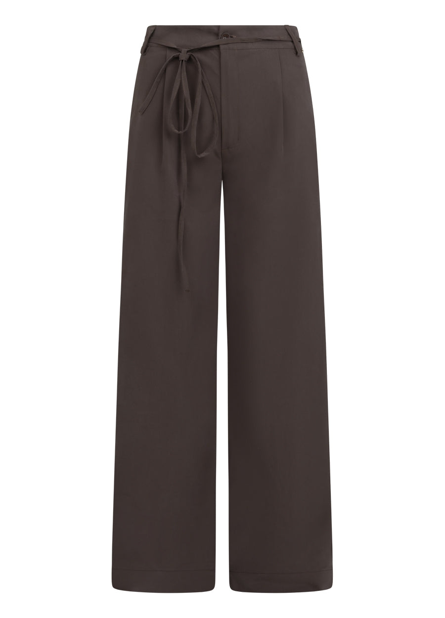 De pantalon heeft een high‑waist fit, rechte pijpen. Aan de achterkant bevindt zich een stijlvol strikceintuur dat zorgt voor een mooie taille en een vrouwelijke, moderne touch. Perfect voor zowel werk als vrije tijd.