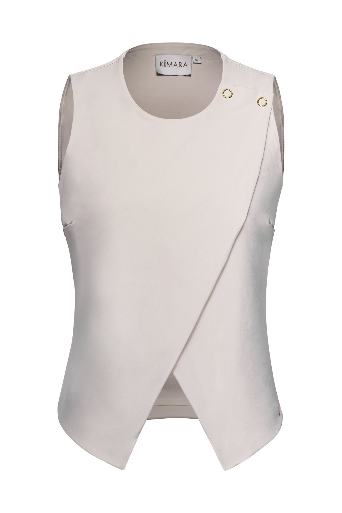 Het unieke ontwerp wordt gekenmerkt door de asymmetrische overslag, die elegant over het lichaam valt en wordt vastgezet met twee chique gouden knopen. De aangesloten taille en licht uitlopende onderzijde creëren een vrouwelijk, flatterend silhouet. De ronde hals en cleane afwerking geven de Lotti Gilet een moderne, sophisticated uitstraling.