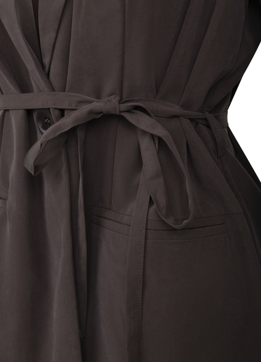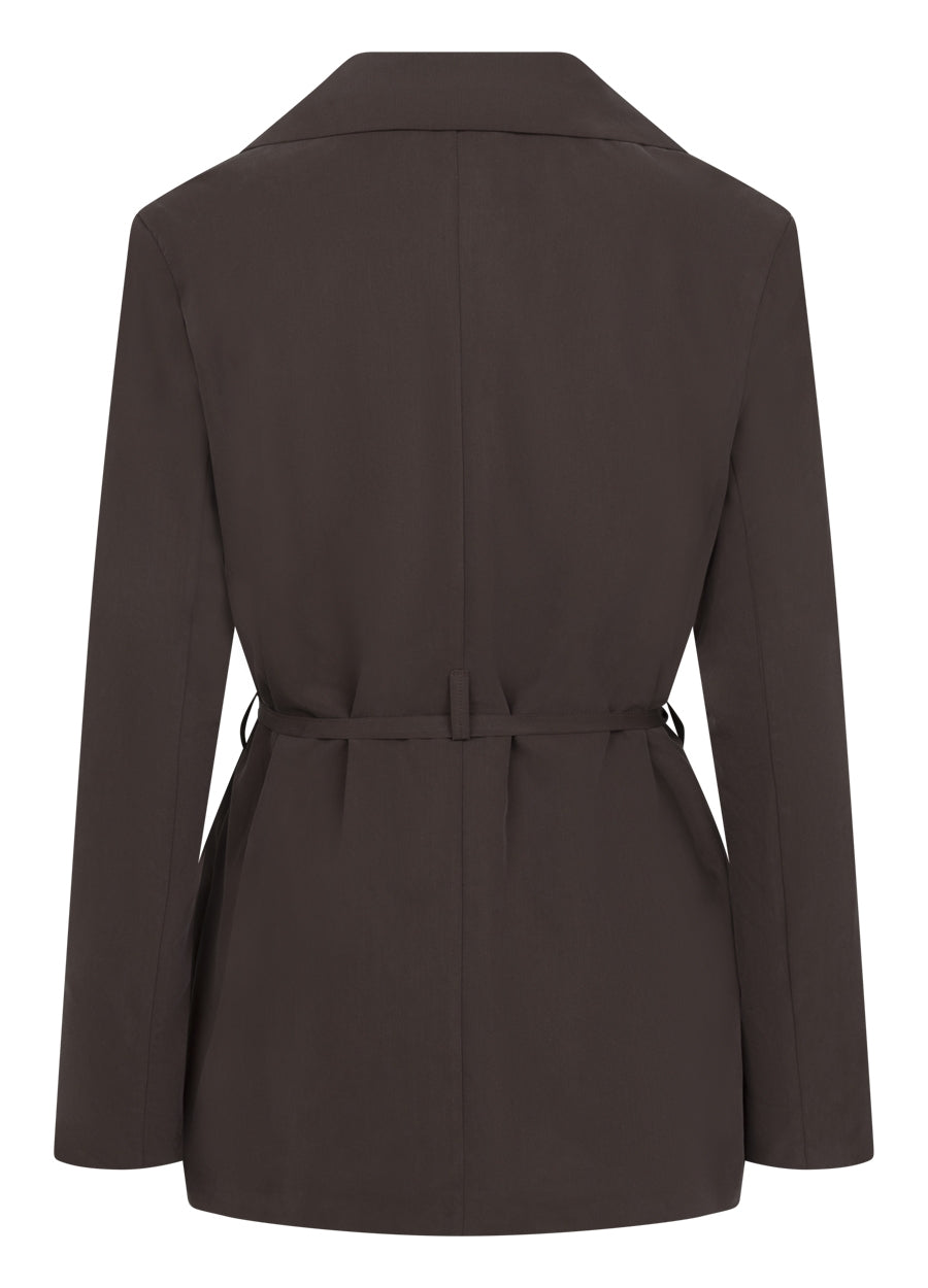 De blazer heeft een subtiel getailleerde snit dankzij de verstelbare strikceintuur die je taille prachtig accentueert. De single‑button sluiting en scherpe revers geven de Roma Blazer een tijdloze, vrouwelijke look. Dankzij de licht glanzende, zijdeachtige stof krijgt deze bruine blazer een moderne, casual‑chique uitstraling die geschikt is voor zowel werk, vrije tijd als avondgelegenheden.