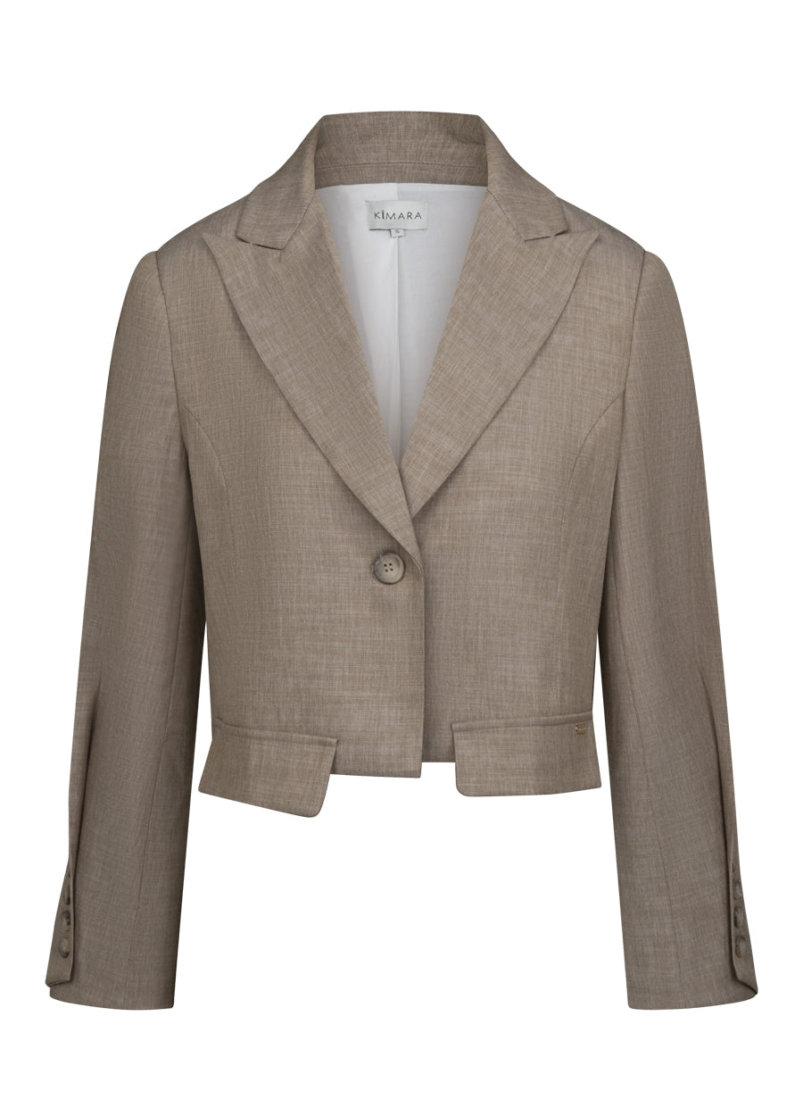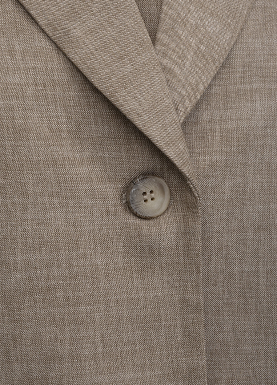 Details: Klare revers, manchetknoopjes, subtiele structuur in de stof