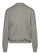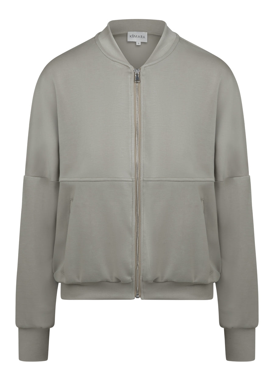 Het ontwerp is clean en verfijnd, met een gladde ritssluiting en een moderne bomber‑inspiratie. De zachte, iets wijdere mouwen en verlaagde schoudernaad geven de cardigan een ontspannen, luxe silhouette, terwijl de brede boorden aan de onderkant en mouwen zorgen voor een elegante, gestroomlijnde afwerking. De fijne steekzakken maken het geheel praktisch én chic.