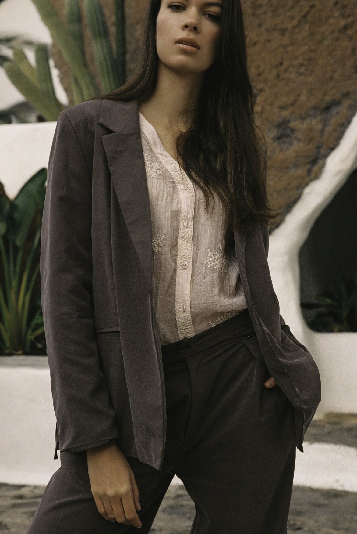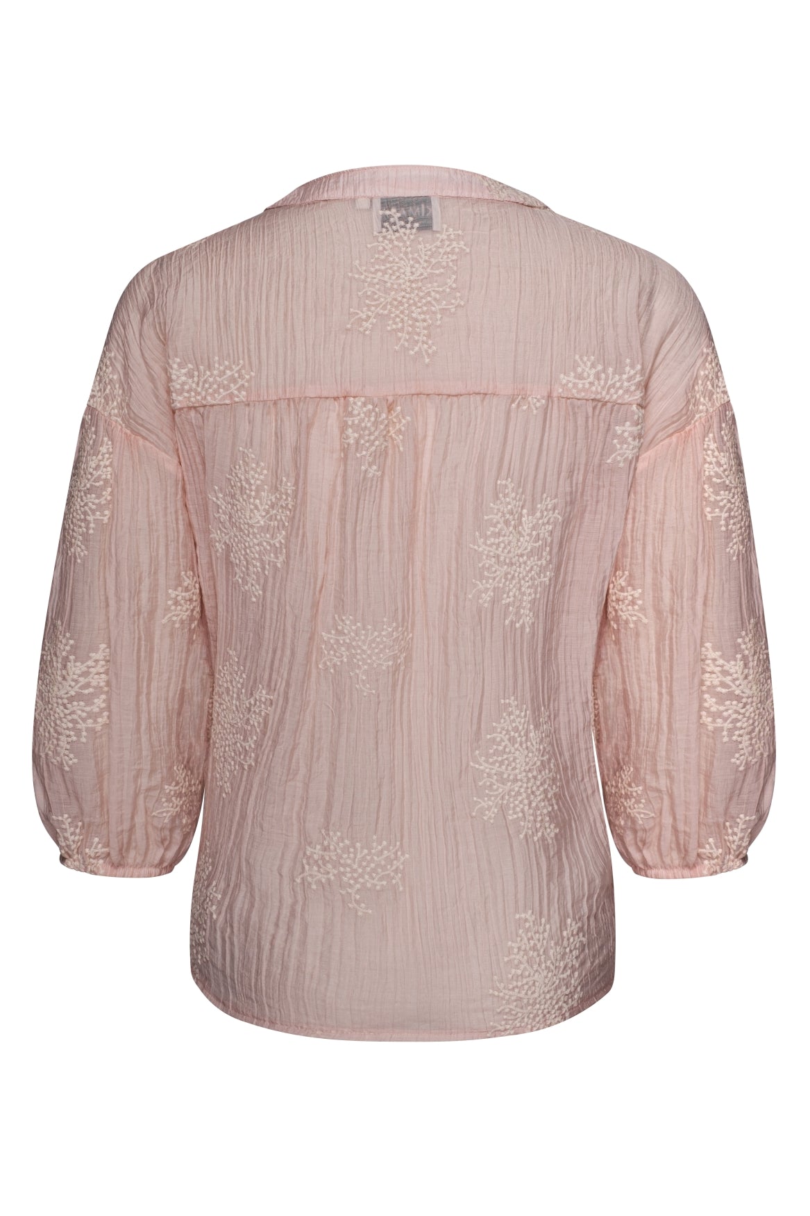 De blouse heeft een mooie V‑hals, een knoopsluiting aan de voorkant en 3/4 pofmouwen die soepel en luchtig vallen. De crinkle‑achtige stof met ton‑sur‑ton bloemenaccenten geeft de Marion Blouse een unieke, moderne bohemian touch perfect voor zowel casual outfits als meer geklede looks.