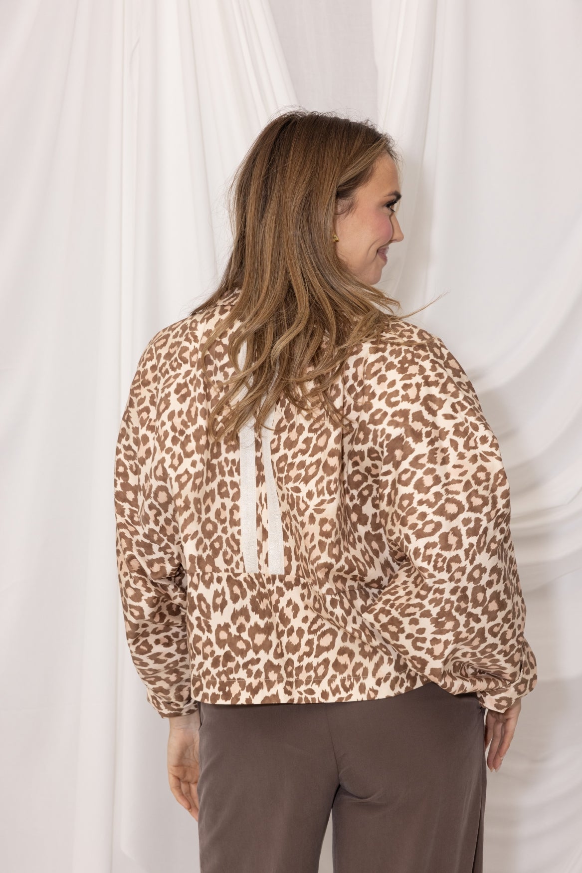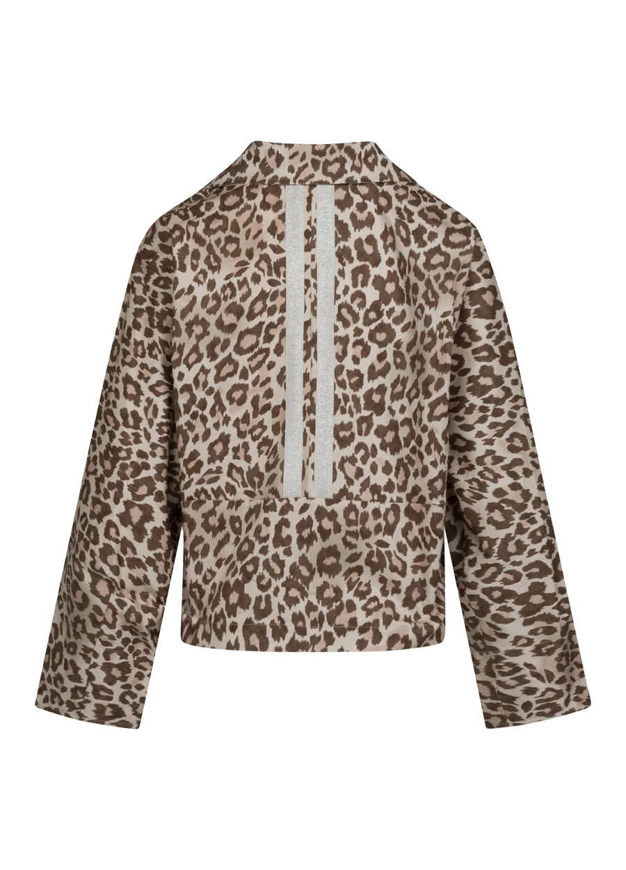 Details: Leopard print, tape‑detail op de rug, klassieke kraag
