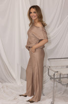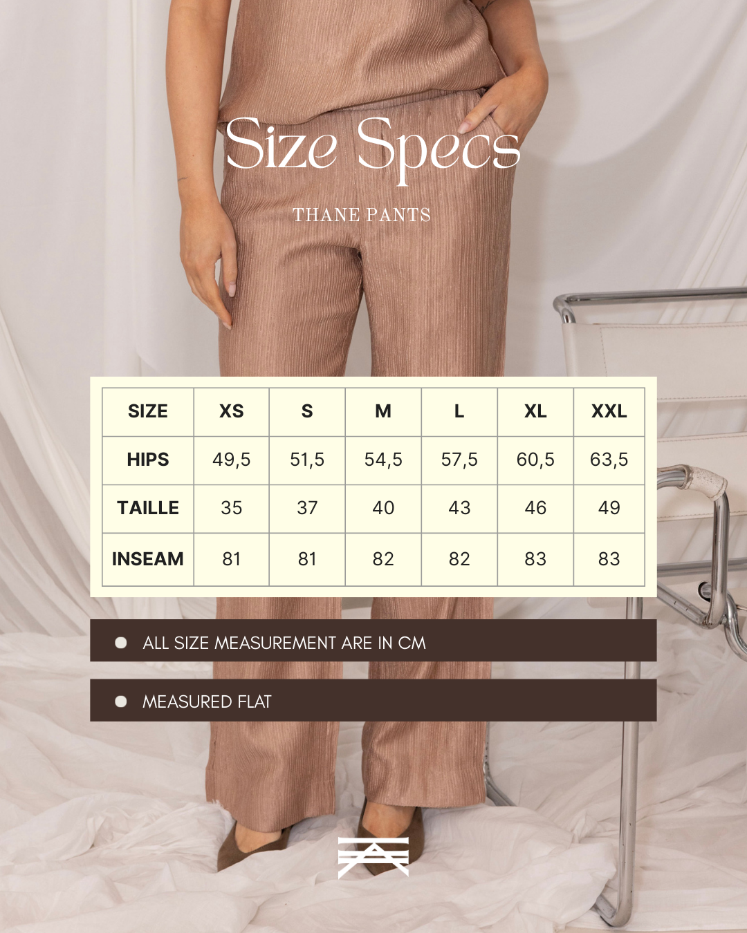 De Thane Pants is een elegante, soepelvallende broek gemaakt van dezelfde luxe Shine Viscose kwaliteit als de Soraya Top. Deze bijzondere stof heeft een subtiele glans en een fijne verticale plissé‑structuur die elke beweging een verfijnde, chique uitstraling geeft. Licht, comfortabel en perfect voor zowel casual als avondlooks.