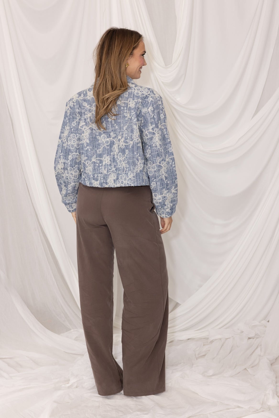 Het ontwerp is uniek en stijlvol door de all‑over florale print die subtiel is verweven in de denim structuur. Dit geeft de Lee Jacket een vrouwelijke, eigentijdse uitstraling zonder aan stoer karakter te verliezen. De klassieke kraag, metalen knopen en borstzakken maken dit jasje tijdloos, terwijl de cropped lengte zorgt voor een moderne, flatterende pasvorm.