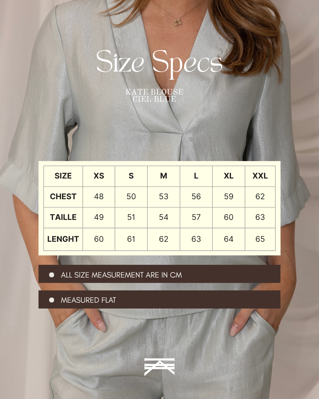 De Kate Blouse laat zich prachtig combineren met de Mel Pants voor een harmonieuze, luxe co‑ord set waarmee je direct een complete, stijlvolle look creëert.
