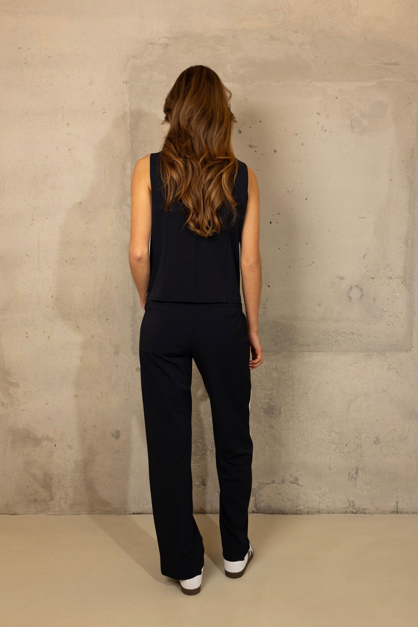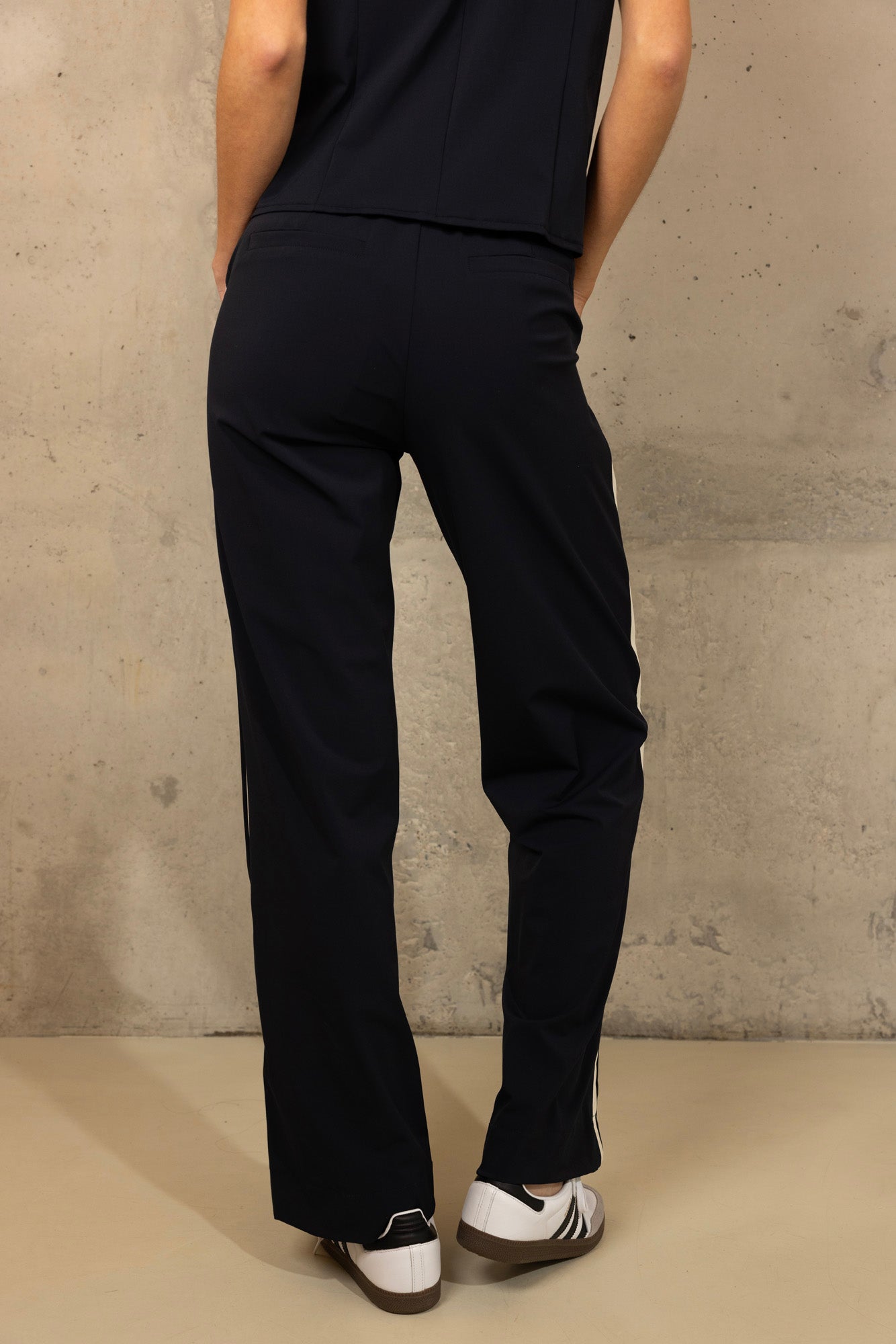 Voeg een vleugje stijl en comfort toe aan je garderobe met de Joyce Pants in Dark Blue. Deze broek is gemaakt van hoogwaardige travelstof en heeft een opvallende witte PU streep aan de zijkant, wat zorgt voor een moderne en sportieve uitstraling. De donkere kleur maakt het eenvoudig om de Joyce Pants te combineren met verschillende items uit onze collectie.