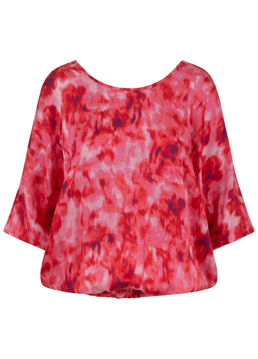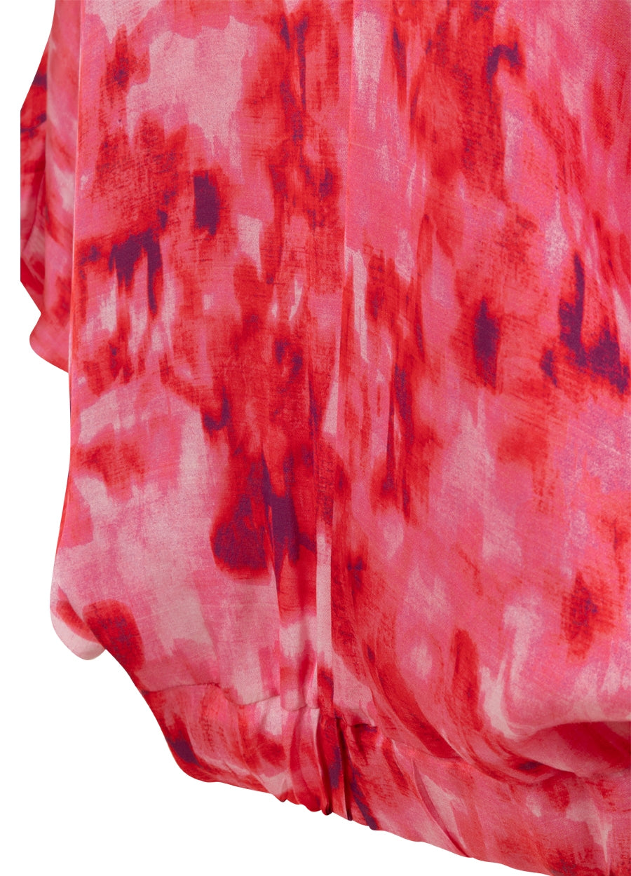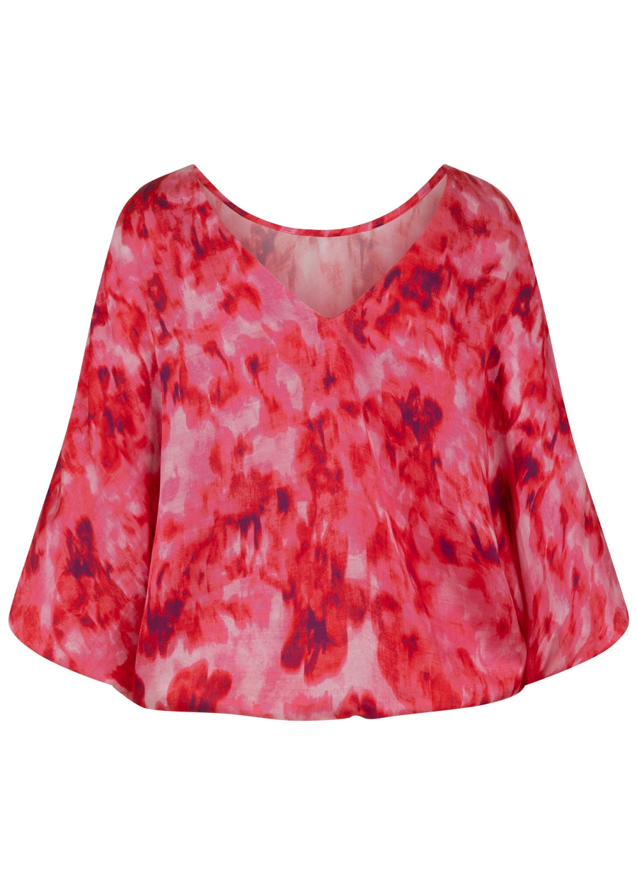 Ontdek de elegante Lily Blouse, gemaakt van luxueuze viscose satin met de prachtige Waterflower print. Deze blouse heeft een kleurrijk bloemenpatroon in tinten rood en roze, wat zorgt voor een opvallende en modieuze uitstraling. De blouse heeft een V-halslijn en wijde, vloeiende mouwen, en de stof is lichtgewicht en semi-transparant, wat een luchtige en verfijnde look geeft. De zachte en soepele viscose satin stof biedt ultiem comfort en een elegante pasvorm, perfect voor zowel casual als formele gelegenheden. Combineer de Lily Blouse met de bijpassende Fiene Pants voor een complete en stijlvolle look.