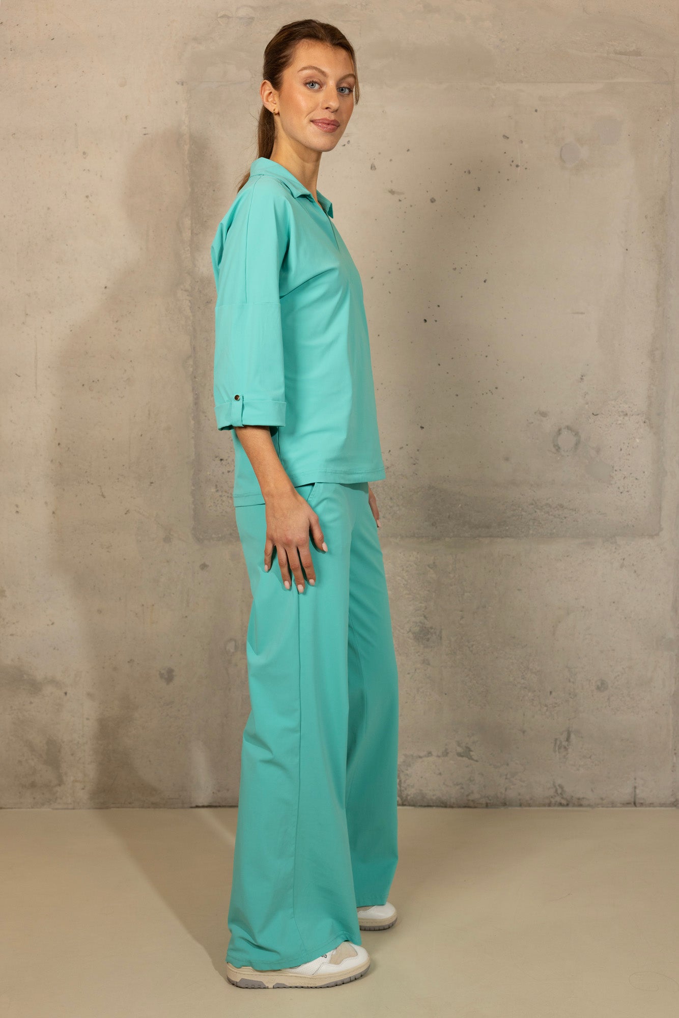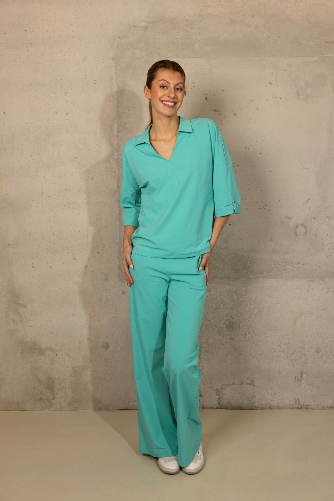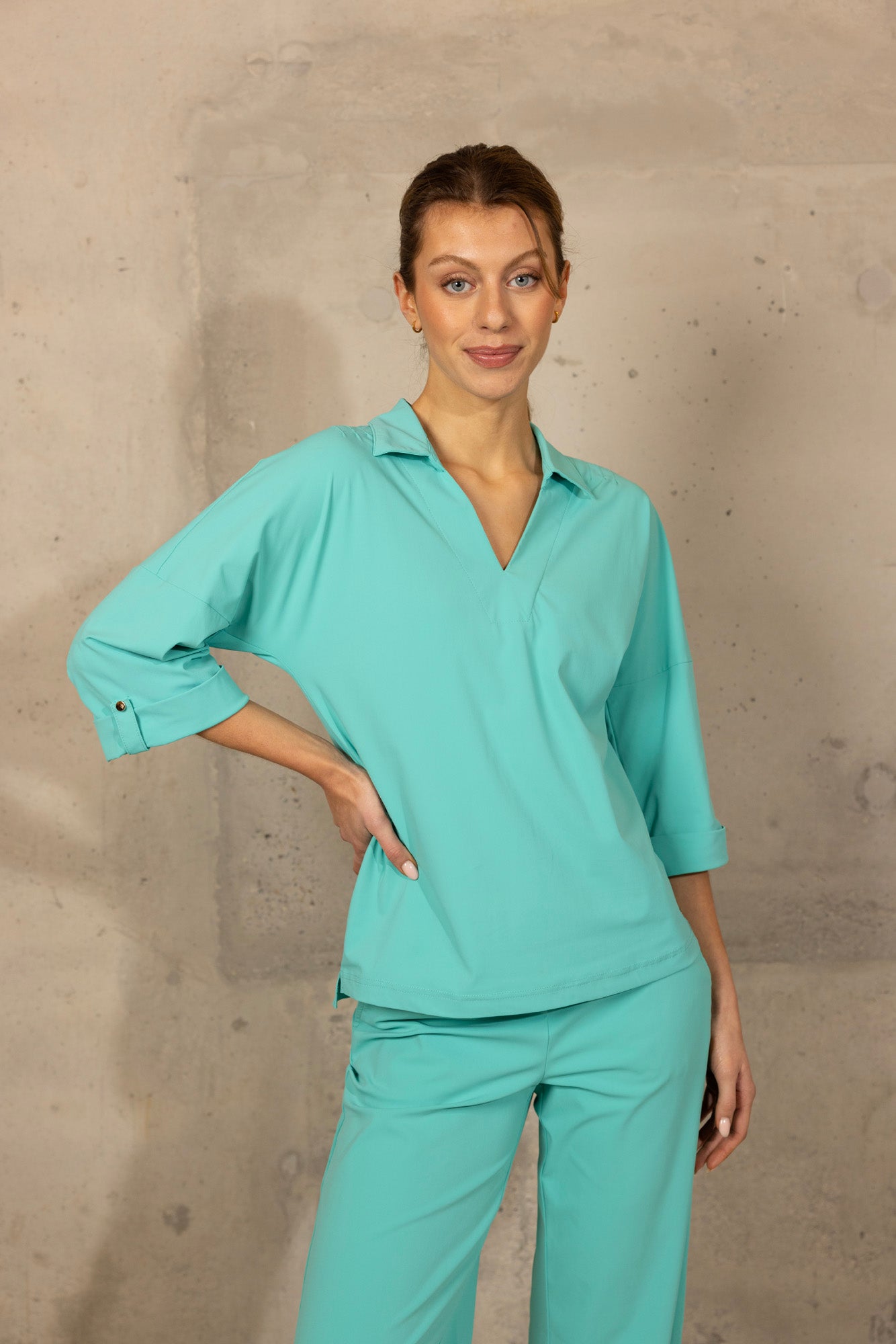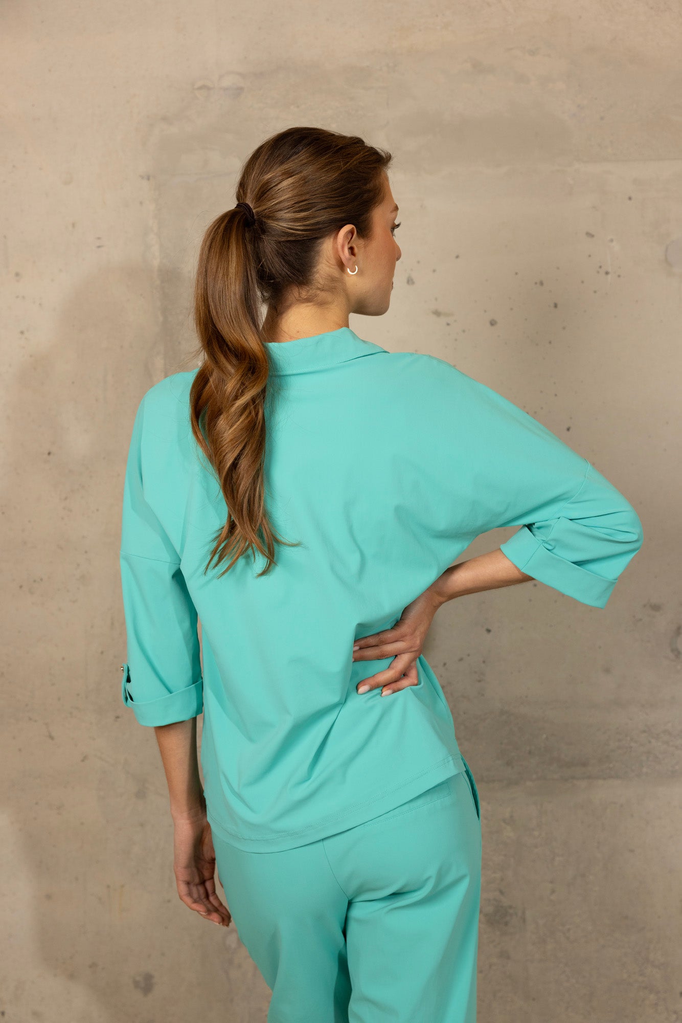 Ontdek de veelzijdigheid van de Mare Top, een stijlvol kledingstuk gemaakt van hoogwaardige travelstof. Deze top heeft driekwart mouwen met knoopdetails en een V-hals, wat zorgt voor een comfortabele en flatterende pasvorm. Verkrijgbaar in de prachtige kleuren Salt, Aqua en Polar Blue, biedt de Mare Top een veelzijdige en stijlvolle optie voor elke garderobe.